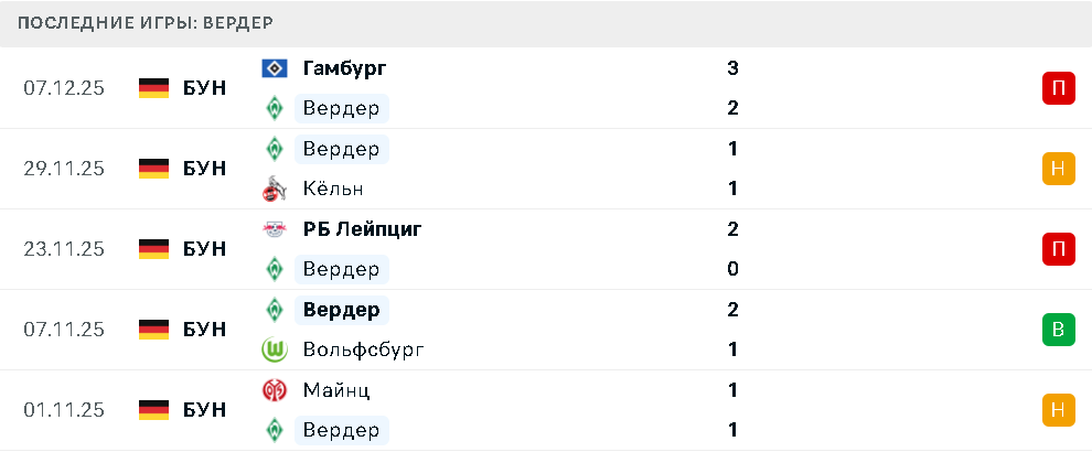 Последние игры Вердера