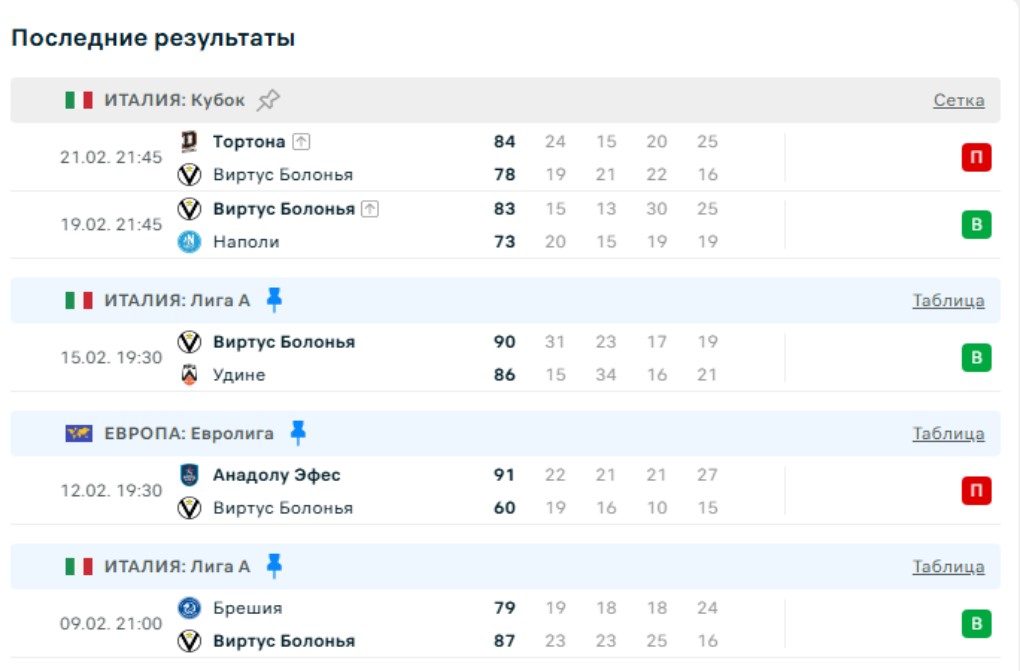 В среду, 25 февраля, «Виртус Болонья» сыграет на домашней арене против «Барселоны» в матче 29-го тура Евролиги. Итальянцы идут только на 15-м месте и сохраняют лишь теоретические шансы на попадание в плей-офф. Каталонцы расположились на пятой позиции и рассчитывают получить прямую путевку в 1/4 финала, а также побороться за вторую строчку. При этом оба клуба регулярно терпят неудачи в последнее время. Кто сумеет добиться успеха?