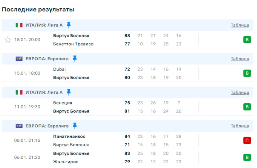 Последние игры Виртус Болоньи