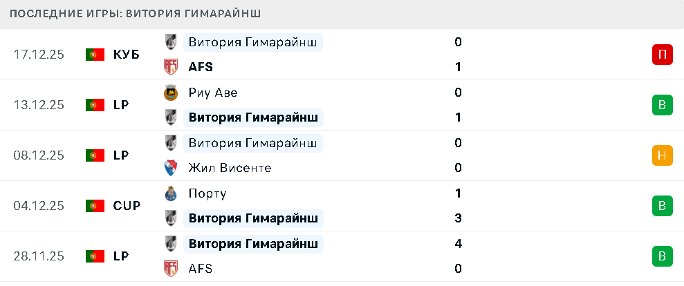 Поражение от АФС стало единственным в пяти последних матчах. До этого «Витория» обыграла АФС, «Порту» и «Риу Аве», а также сыграла вничью с «Жил Висенте».