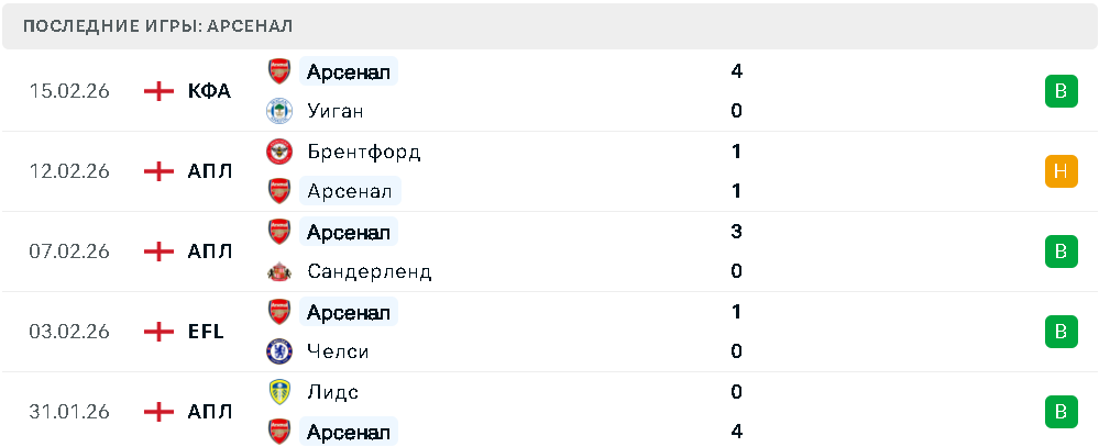 Последние игры Арсенала