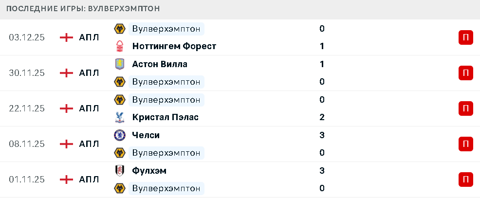 Более слабой формы представить сложно. В пяти последних матчах «волки» не просто проиграли «Фулхэму», «Челси», «Кристал Пэлас», «Астон Вилле» и «Ноттингем Форест», но и не забили ни одного гола.