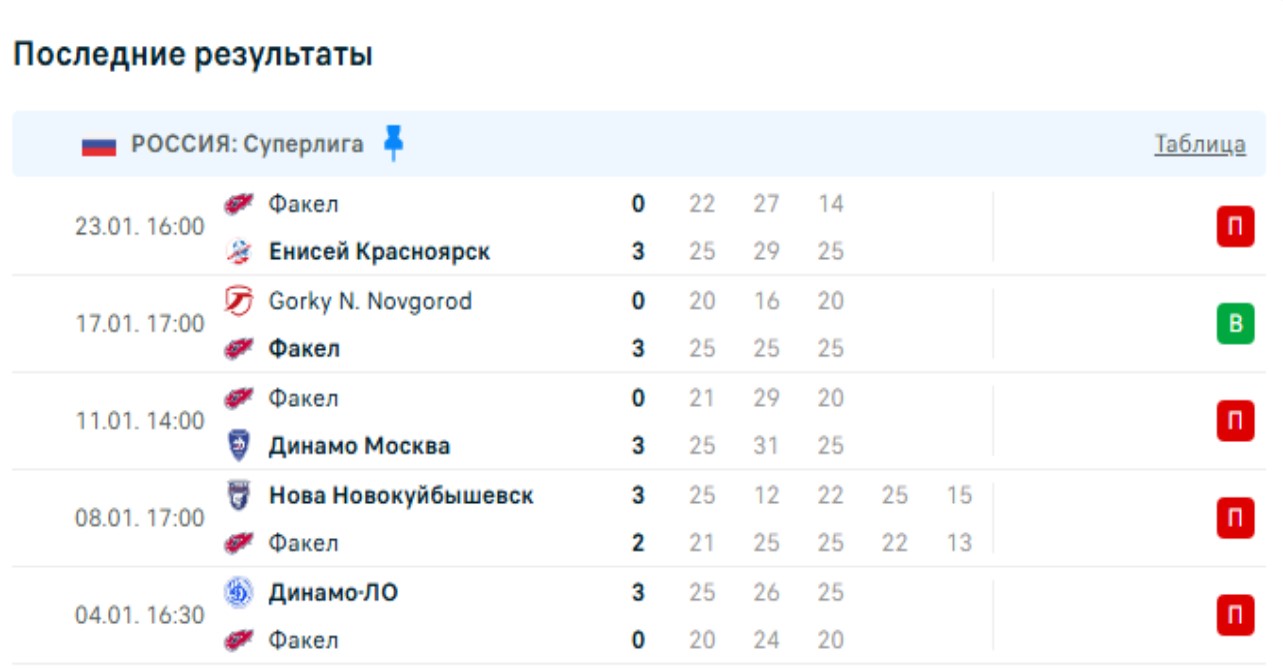 Последние игры «Факела»