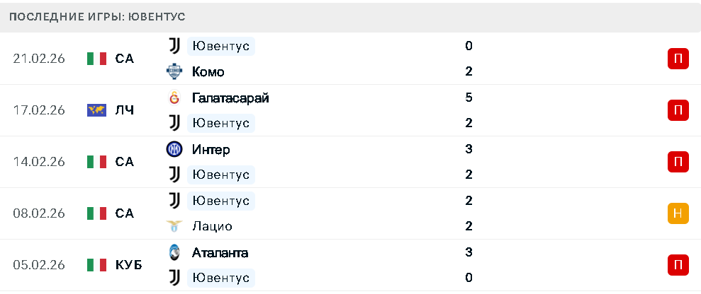 В последний раз «Юве» выглядел уверенно в начале февраля, когда на выезде разгромил «Парму» (4:1). После этого результаты пошли на спад: болезненное кубковое поражение 0:3 от «Аталанты», ничья с «Лацио» (2:2) и проигрыш «Интеру» (2:3) в принципиальном противостоянии. К неудачам добавился и разгром в Стамбуле, который серьезно ударил по моральному состоянию команды.