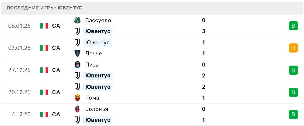Последние игры Ювентуса