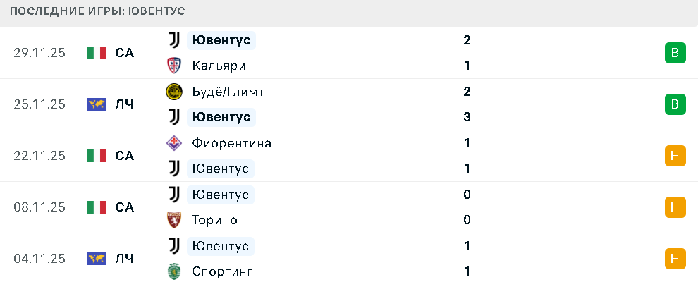 Последние игры «Ювентуса»