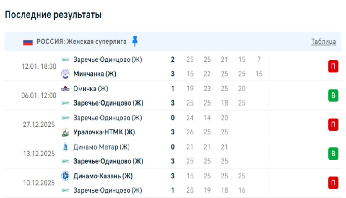 В первом круге Заречье-Одинцово победило дома 3:1. Подмосковные волейболистки выиграли 5 из 6 предыдущих очных встреч.