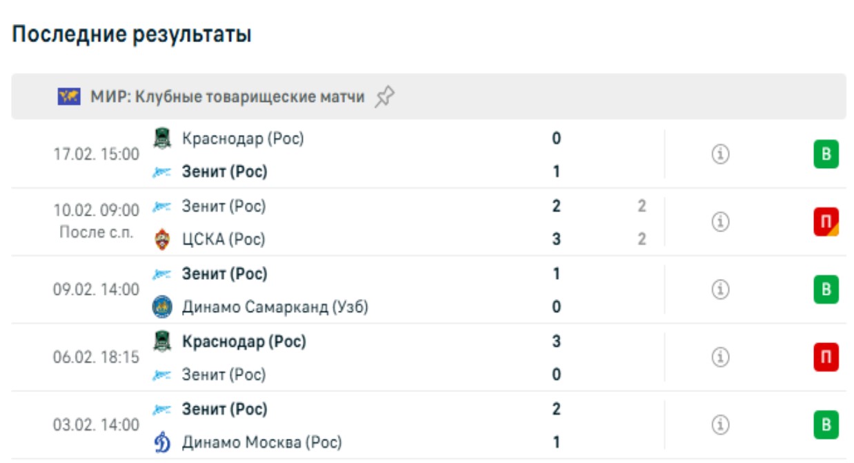Последние игры Зенита