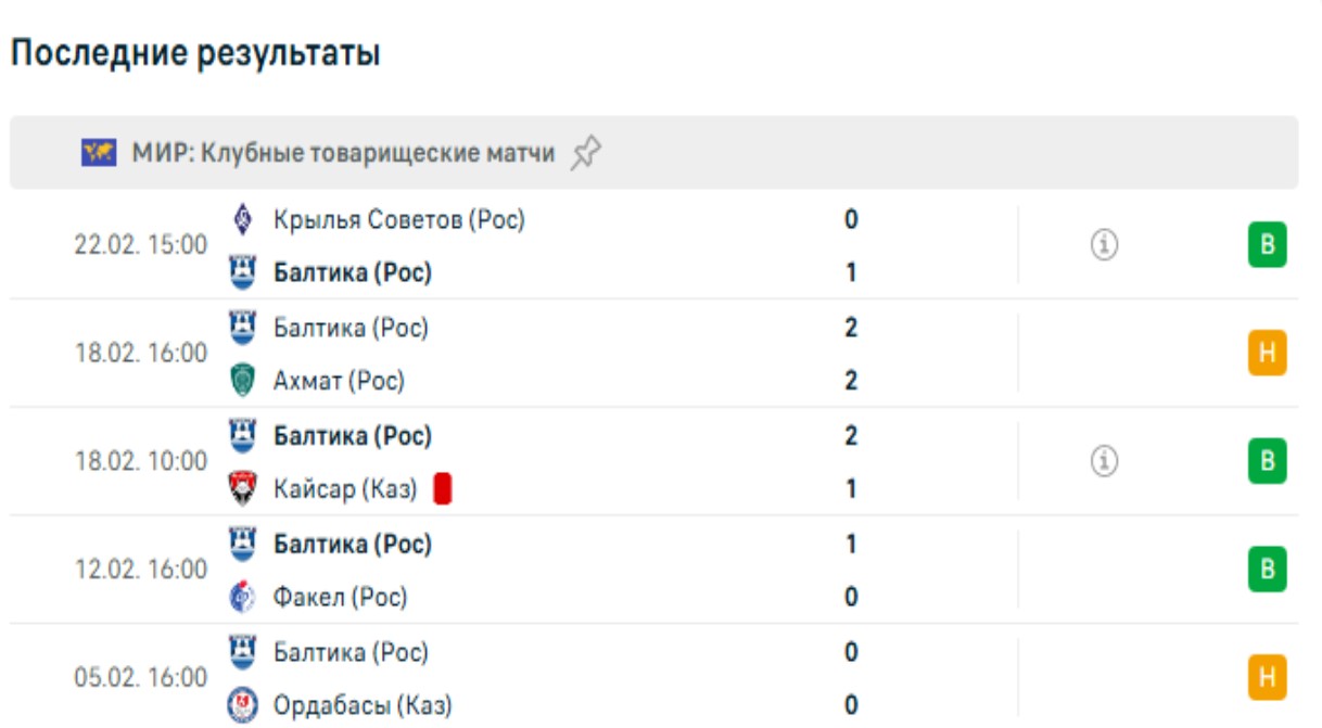 Последние игры Балтики