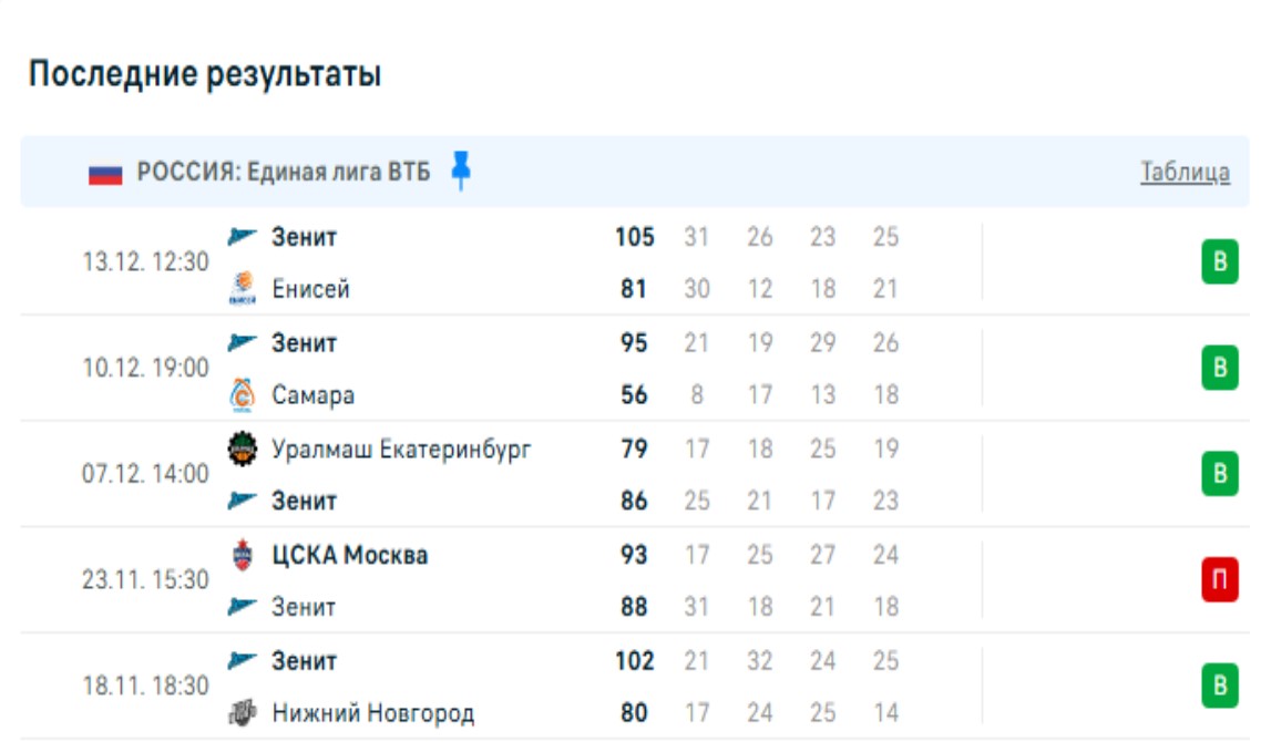 - Зенит выиграл 6 предыдущих матчей в Единой лиге ВТБ на своей площадке.