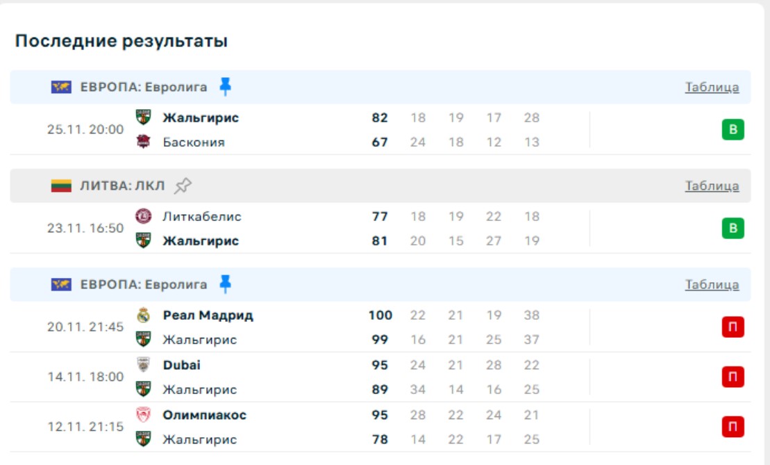 Последние игры Жальгириса