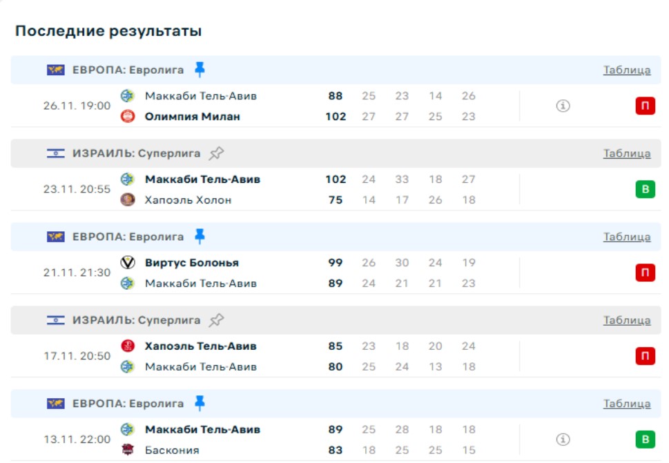 Последний раз команды играли в Израиле в декабре прошлого года, на своей площадке Маккаби был сильнее 95:78. У команды из Тель-Авива ощутимый перевес по очным встречам — 8 побед в предыдущих 10 поединках.