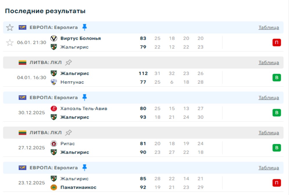 В прошлом туре Евролиги Жальгирис в Италии проиграл Виртус Болонье. Хозяева с первых минут лидировали в счете. Баскетболистам из Болоньи так и не удалось оформить большое преимущество по ходу встречи, но и литовцам они ни разу не позволили хотя бы сравнять счет. В результате поражение коллектива Масюлиса 79:83.